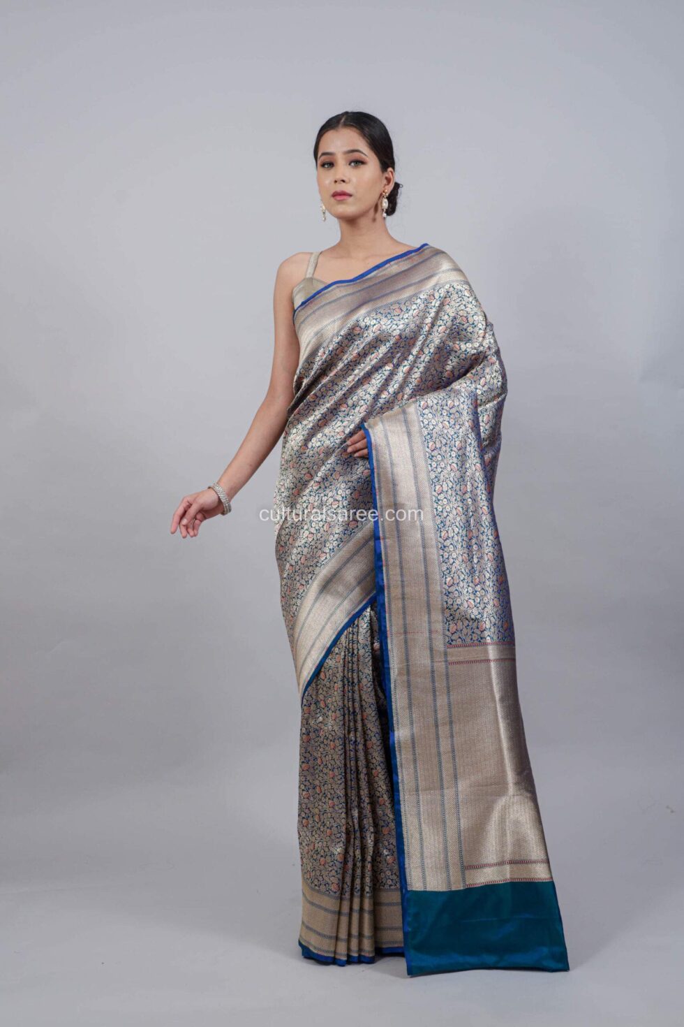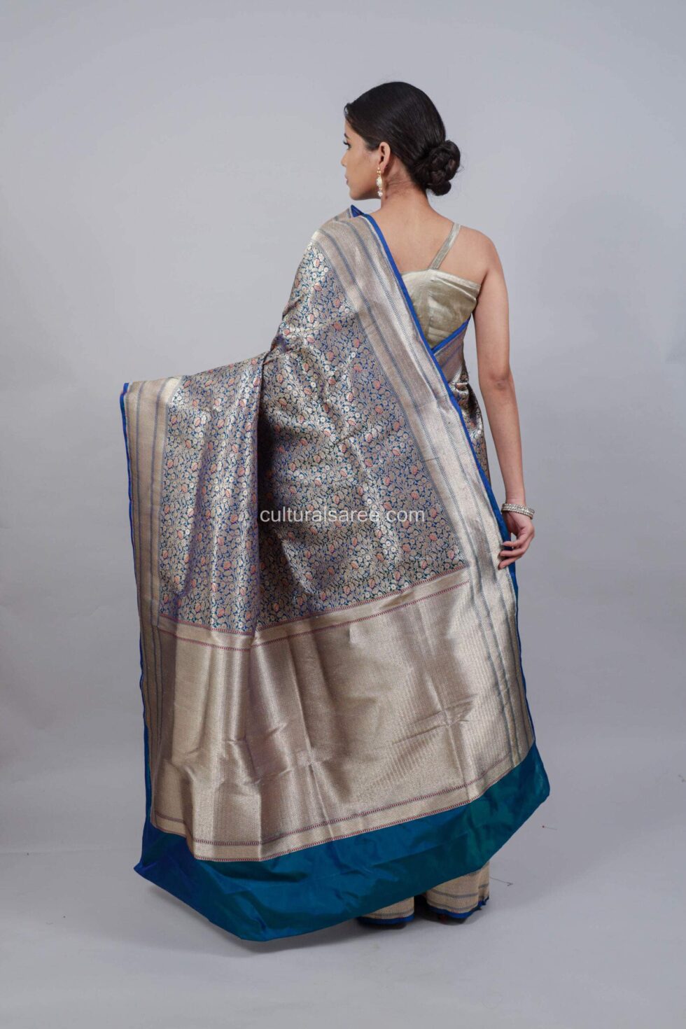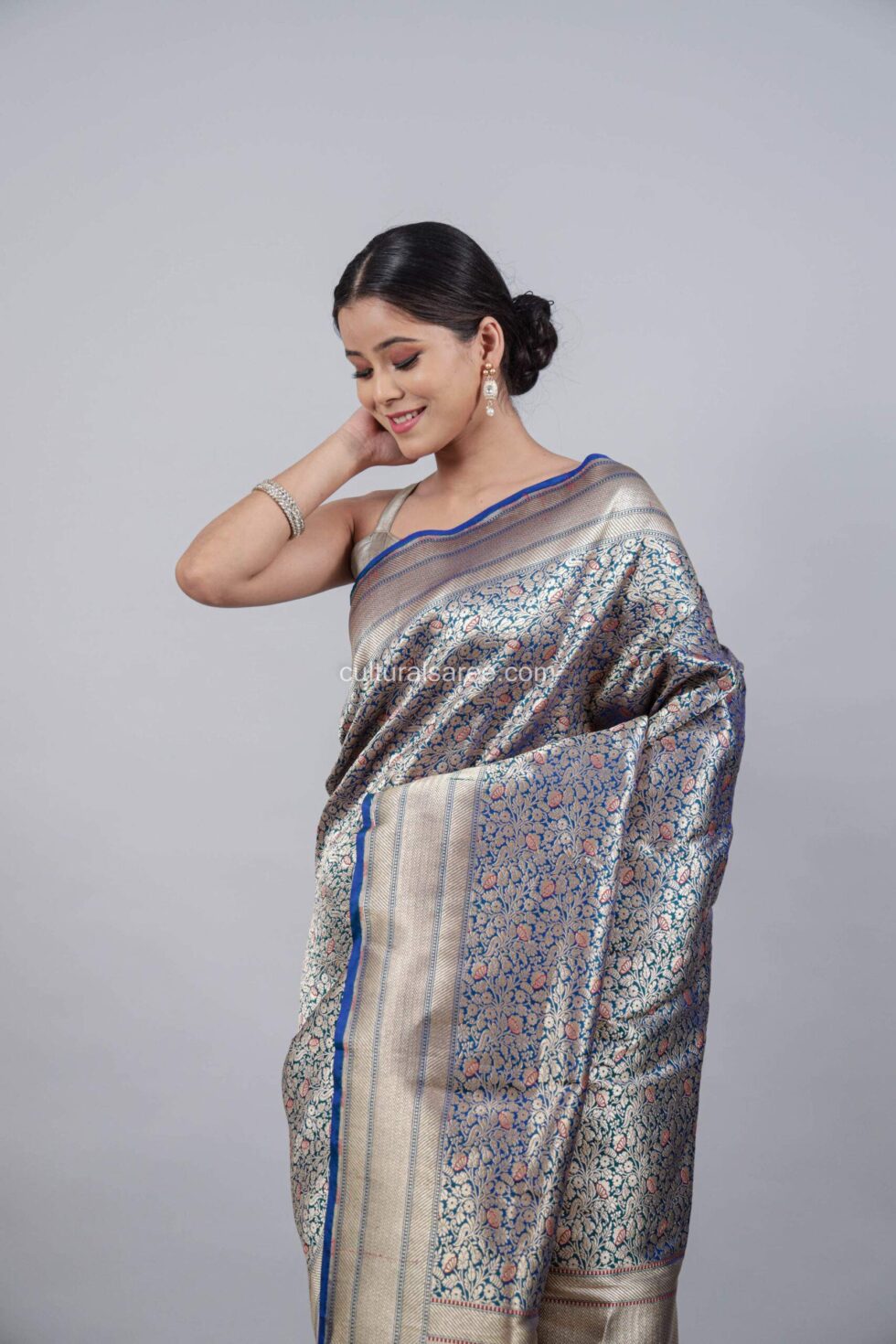 The German Blue Brocket Jal Banarasi Pure Silk Saree is a mesmerizing blend of elegance and tradition. Made from premium Banarasi pure silk, this saree offers a luxurious drape with a soft texture that exudes sophistication. The stunning German blue base is intricately adorned with Brocket jal weaving, featuring delicate floral and paisley motifs, symbolizing timeless beauty. Ideal for weddings, festive occasions, or grand celebrations, this saree is a perfect choice for those who appreciate the richness of Banarasi craftsmanship.