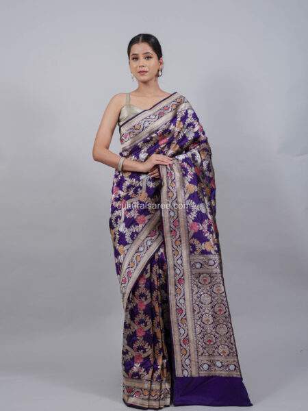 Fabric: Premium Banarasi pure silk, offering a rich texture and elegant drape.