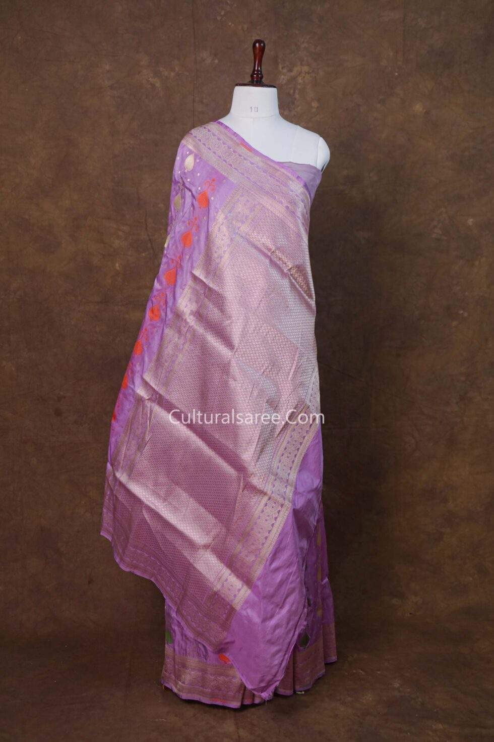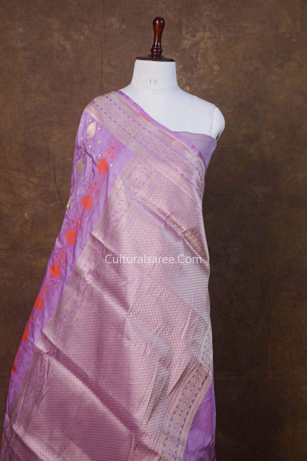 Lavender Banarasi Handloom Silk Saree with Mughal Surayi Buta