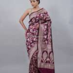 Pair this exquisite saree with a matching magenta blouse and elegant jewelry to create a majestic ensemble that captivates attention and celebrates your distinctive style.