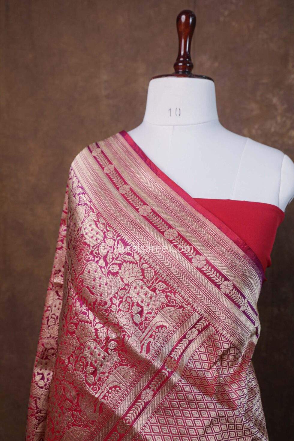 Fabric: Premium Banarasi pure silk, offering a rich texture and elegant drape.