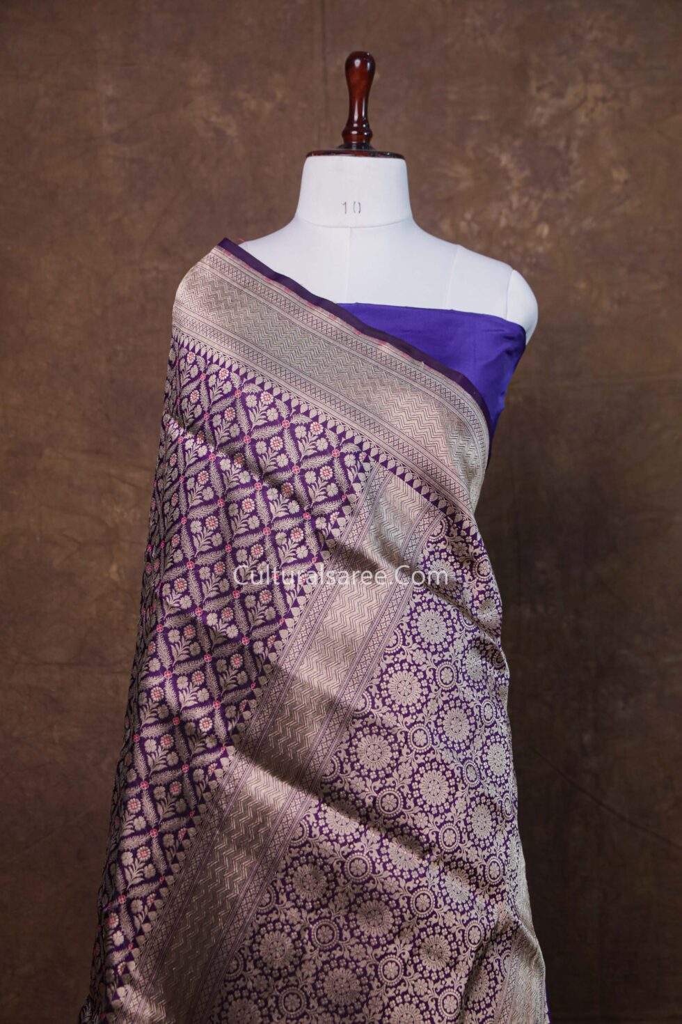 Purple Blue Banarasi Handloom Floral Brocket Jaal Silk Saree