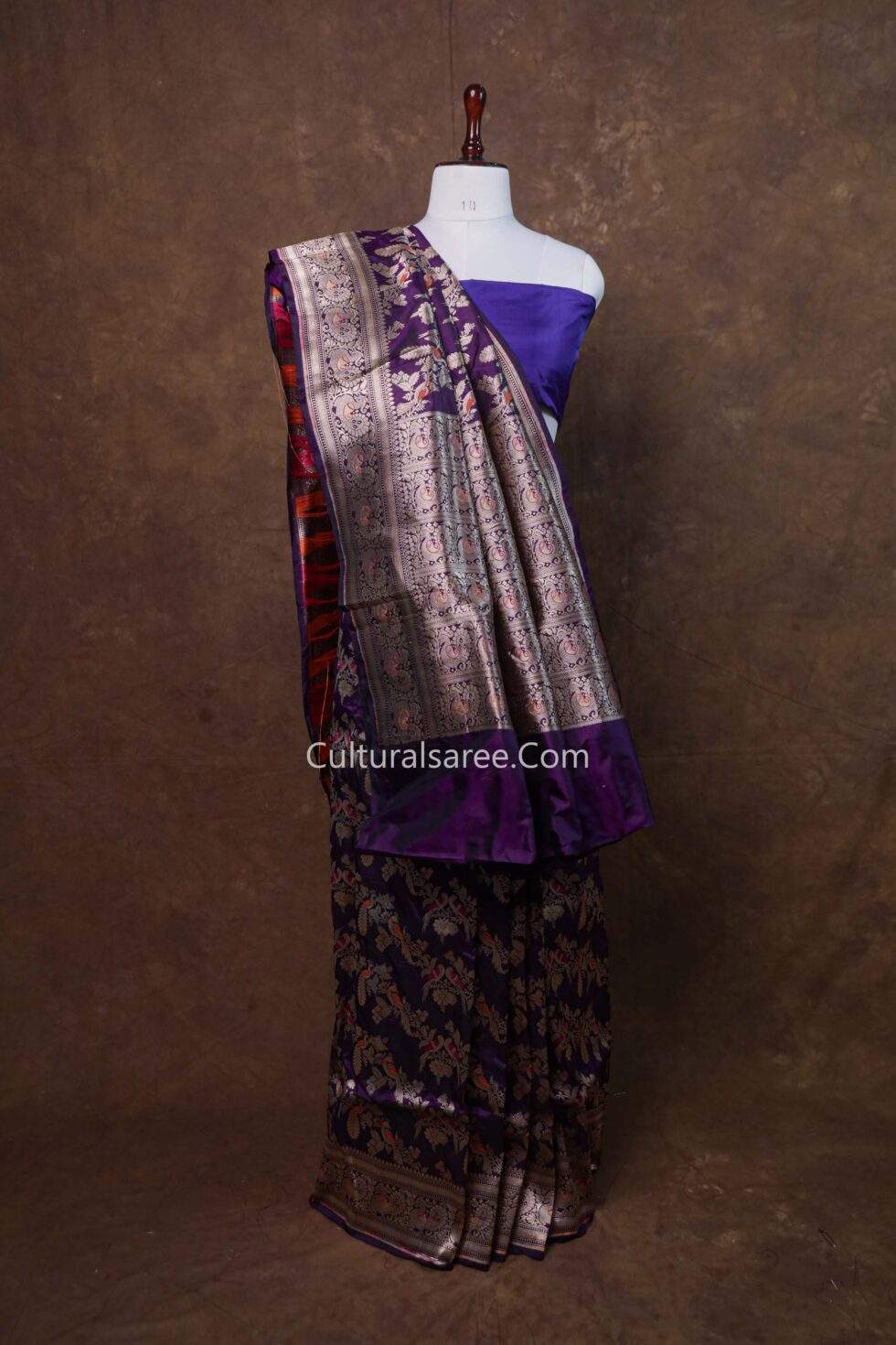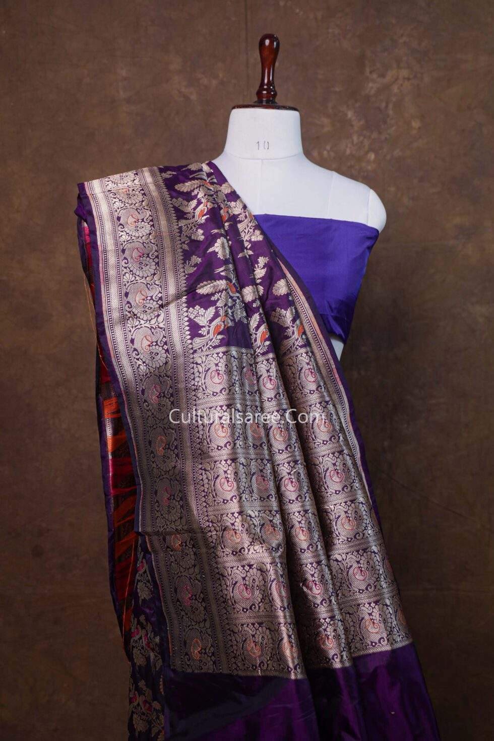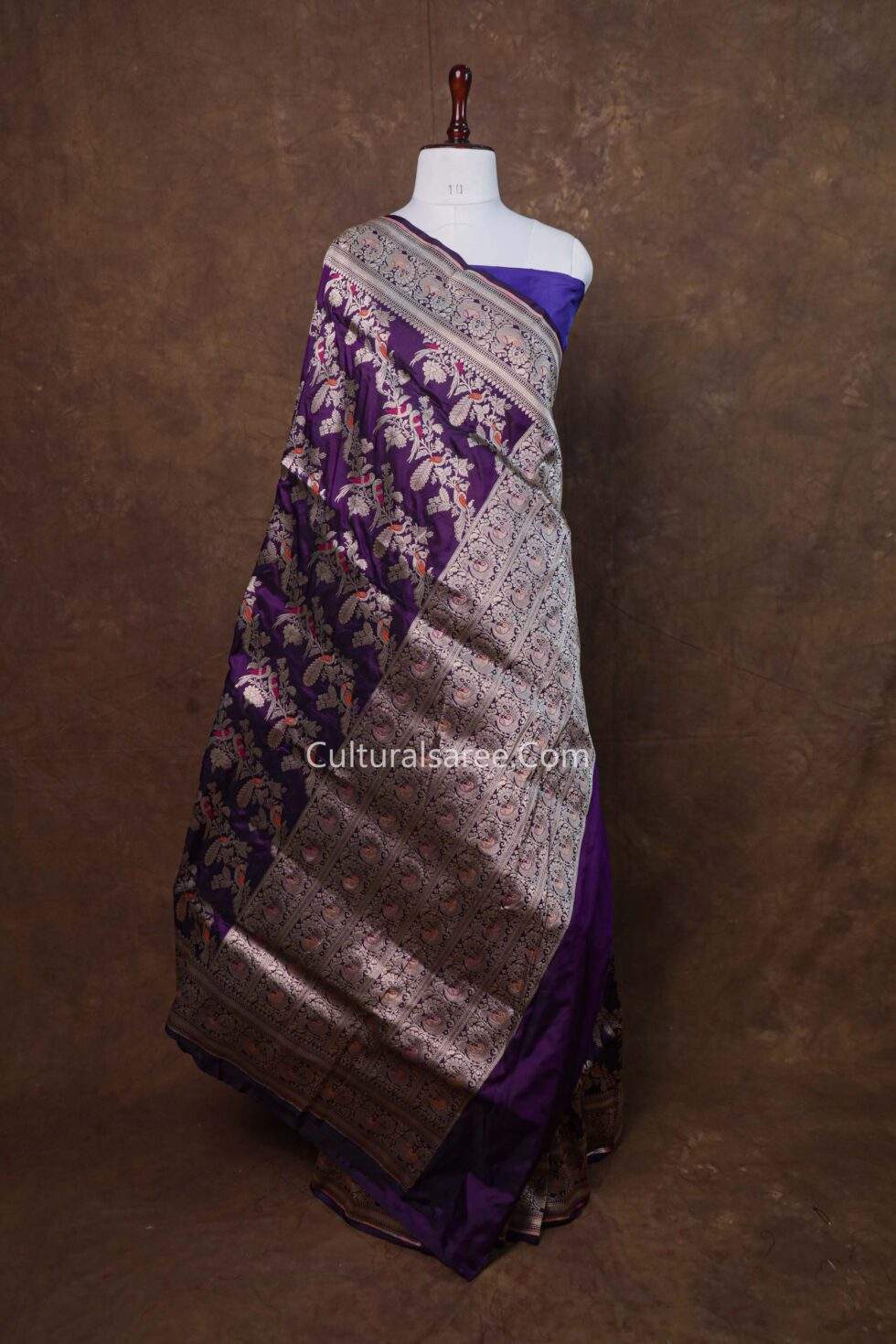 Fabric: Premium Banarasi pure silk, offering a rich texture and elegant drape.
