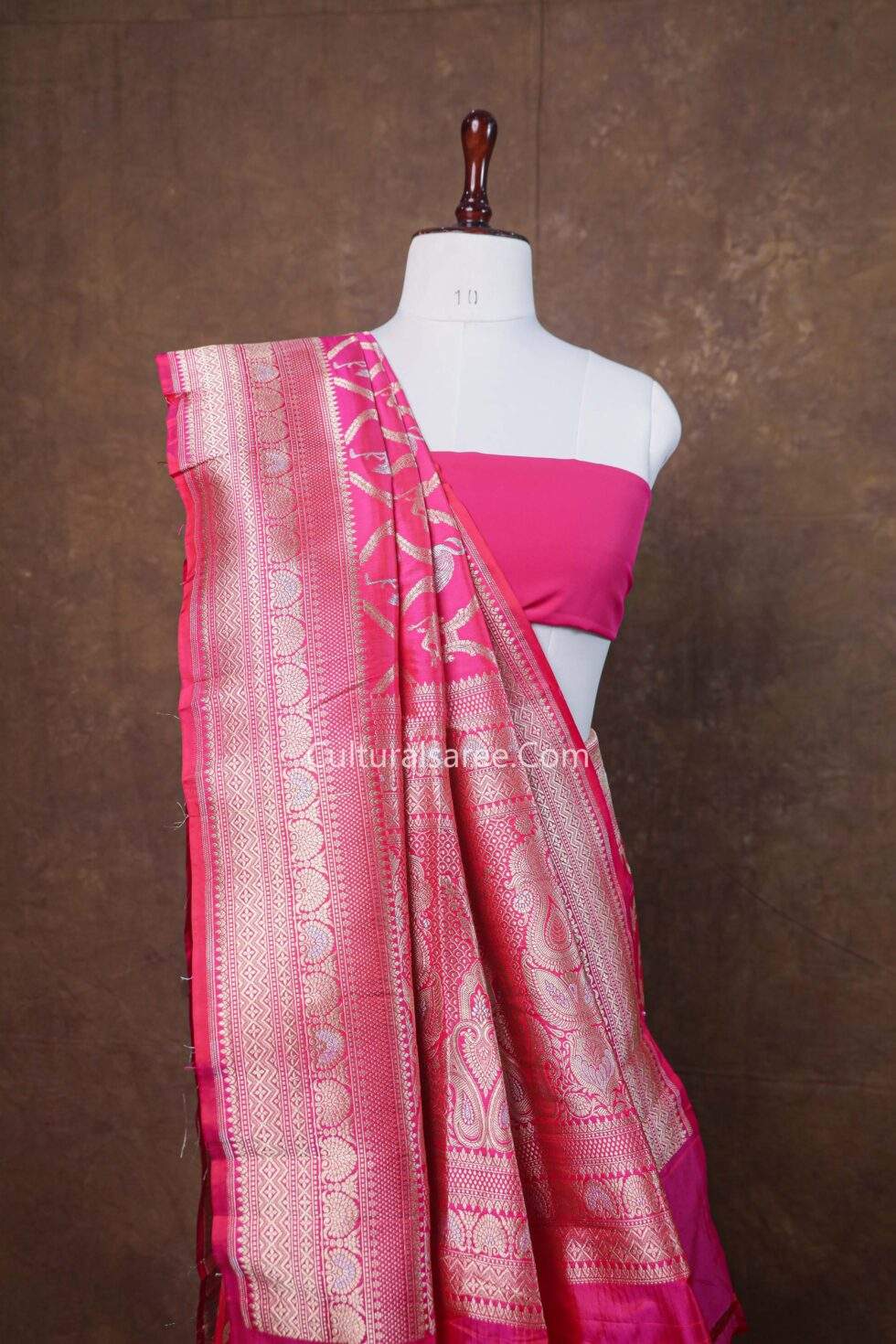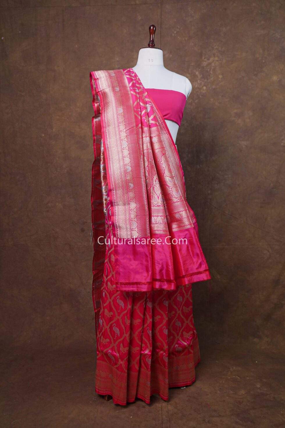 Rani Color Banarasi Handloom Pure Silk Saree With Bagula Buta