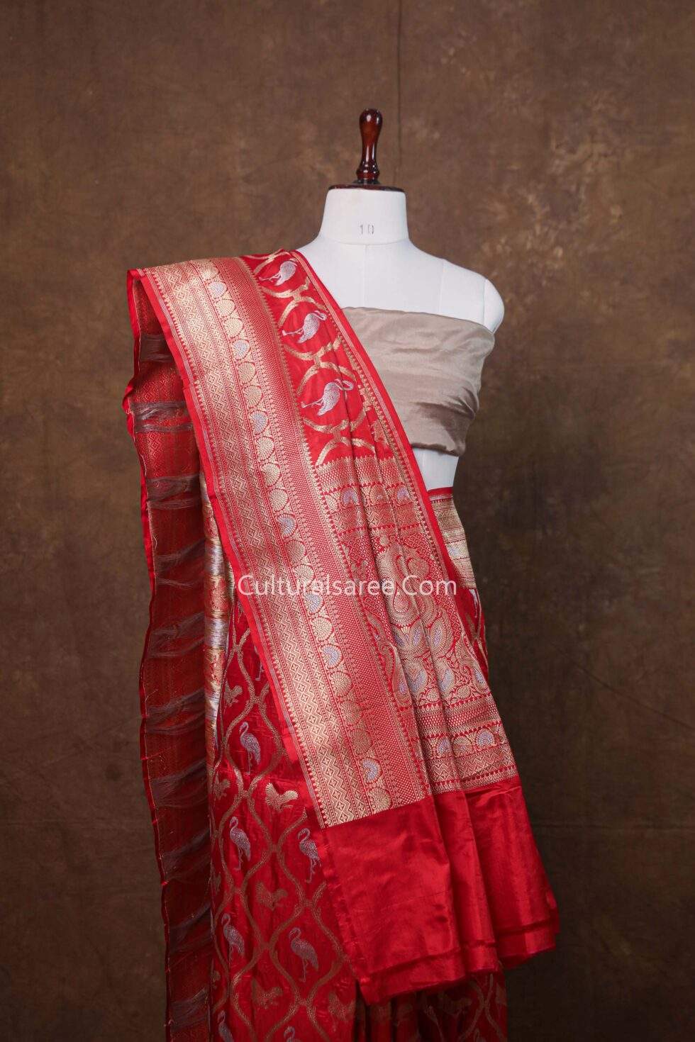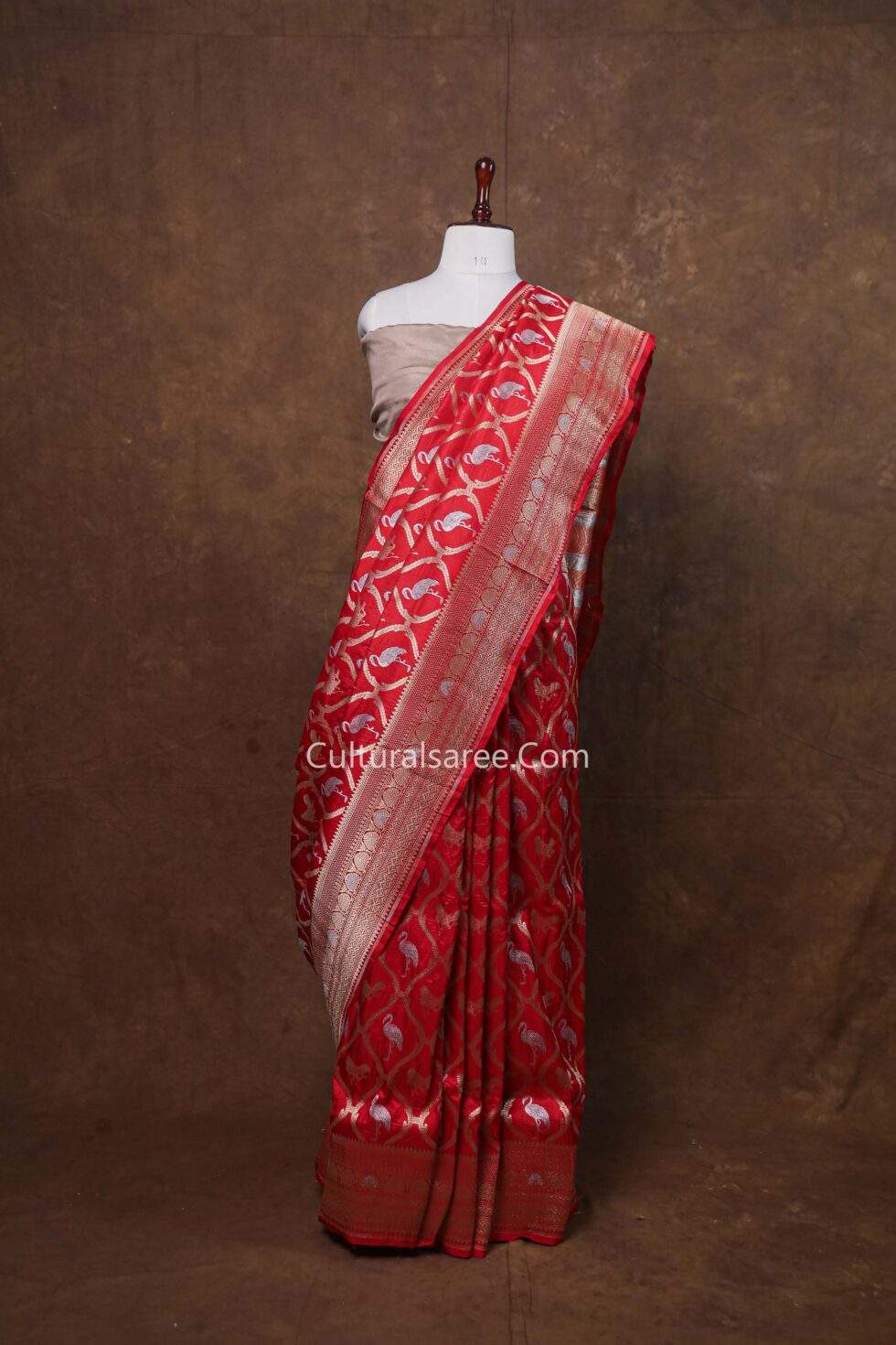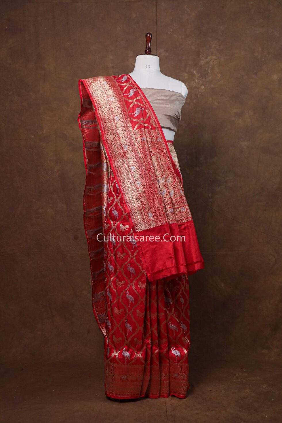 Fabric: Premium Banarasi pure silk, offering a rich texture and elegant drape.