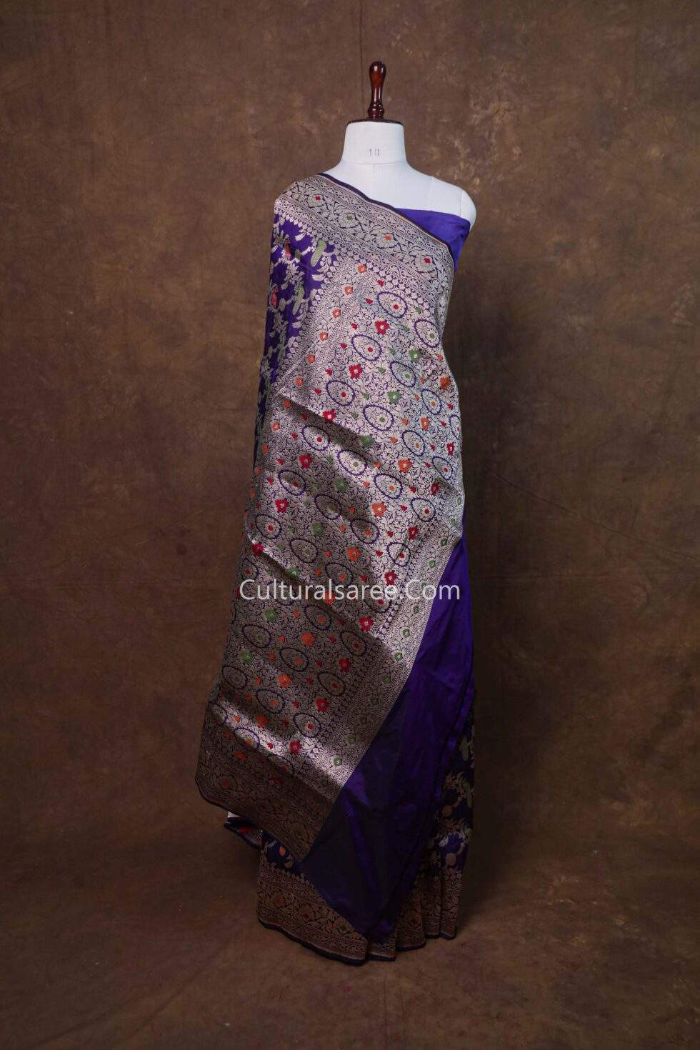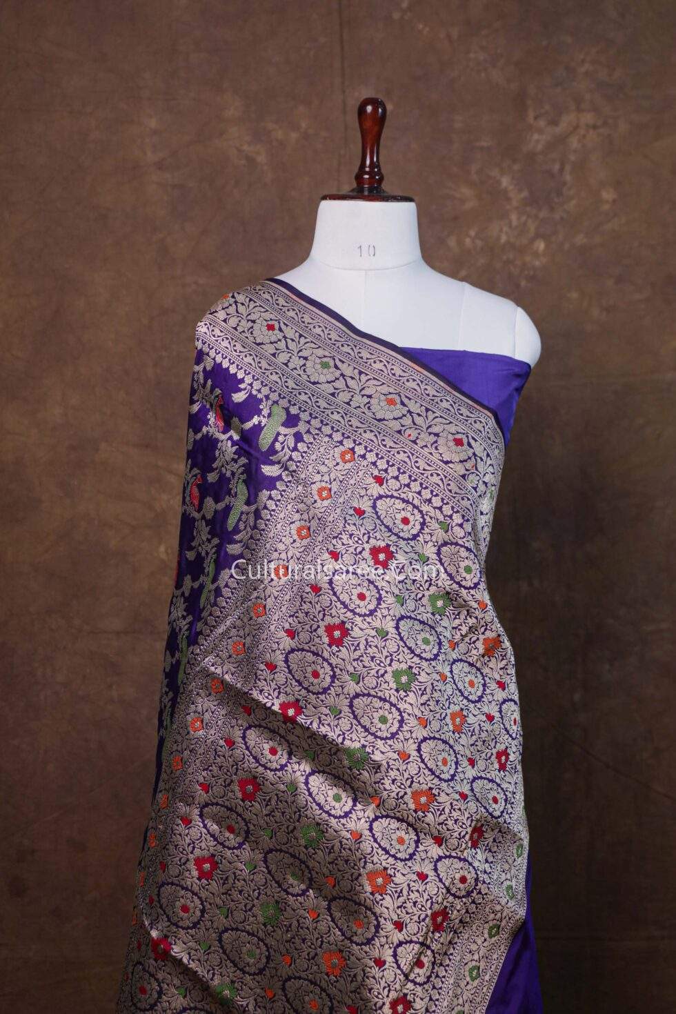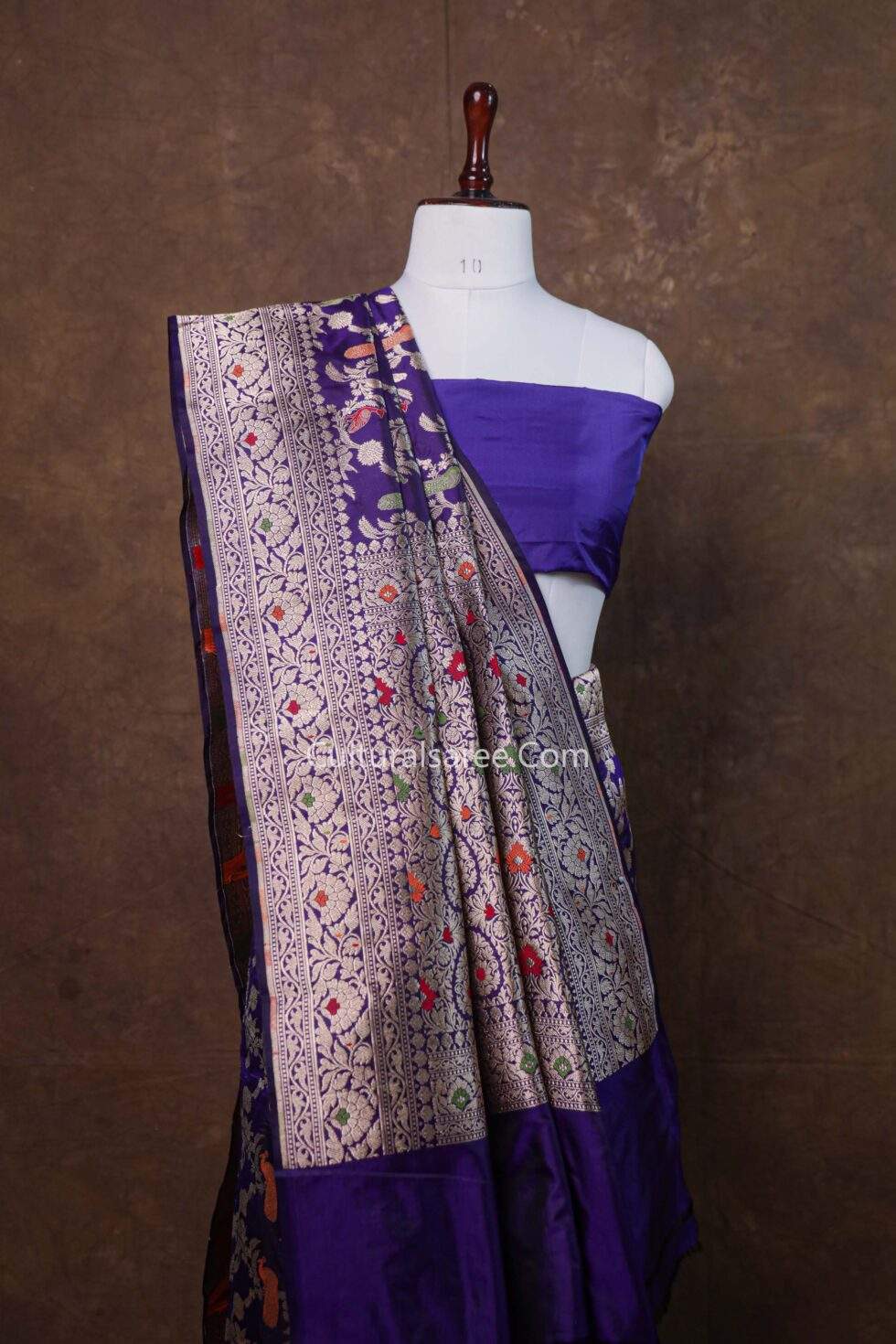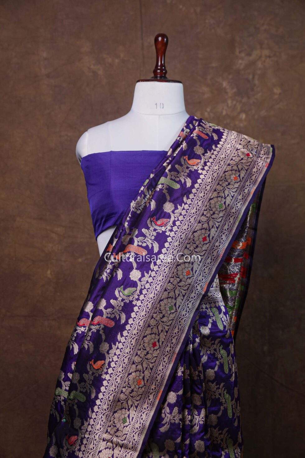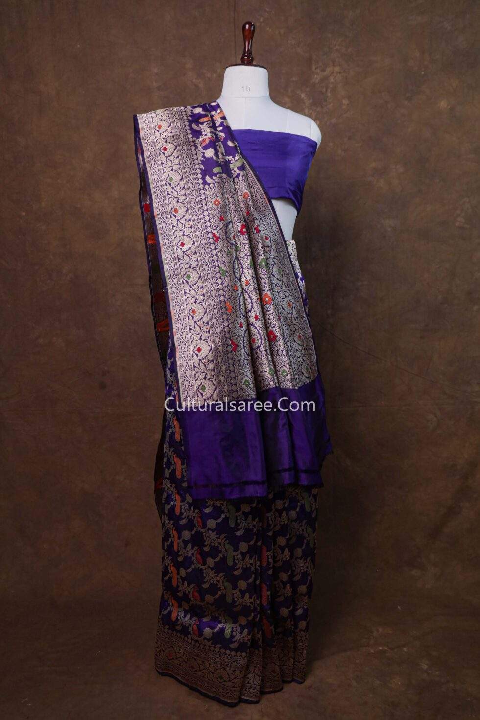 Royal Blue Banarasi Handloom Peacock Figure Minedar Silk Saree