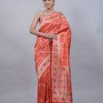The Royal Orange Jangla Flower Bouquet Banarasi Pure Silk Saree is a stunning representation of traditional Banarasi artistry. Made from premium pure silk, this saree offers an unparalleled drape with a soft, luxurious texture. The vibrant royal orange base is adorned with intricate Jangla weaving, featuring elegant flower bouquet motifs that exude charm and grace. This timeless piece is ideal for weddings, festive celebrations, and grand occasions, adding a regal touch to your ensemble.