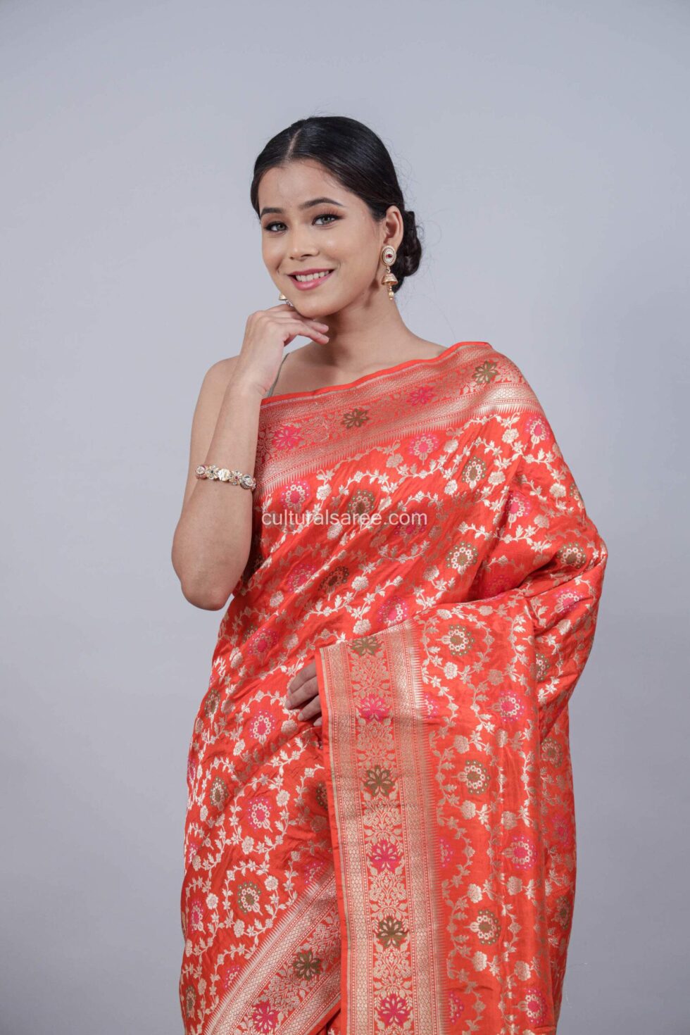 Fabric: Premium Banarasi pure silk, offering a soft texture and luxurious drape.