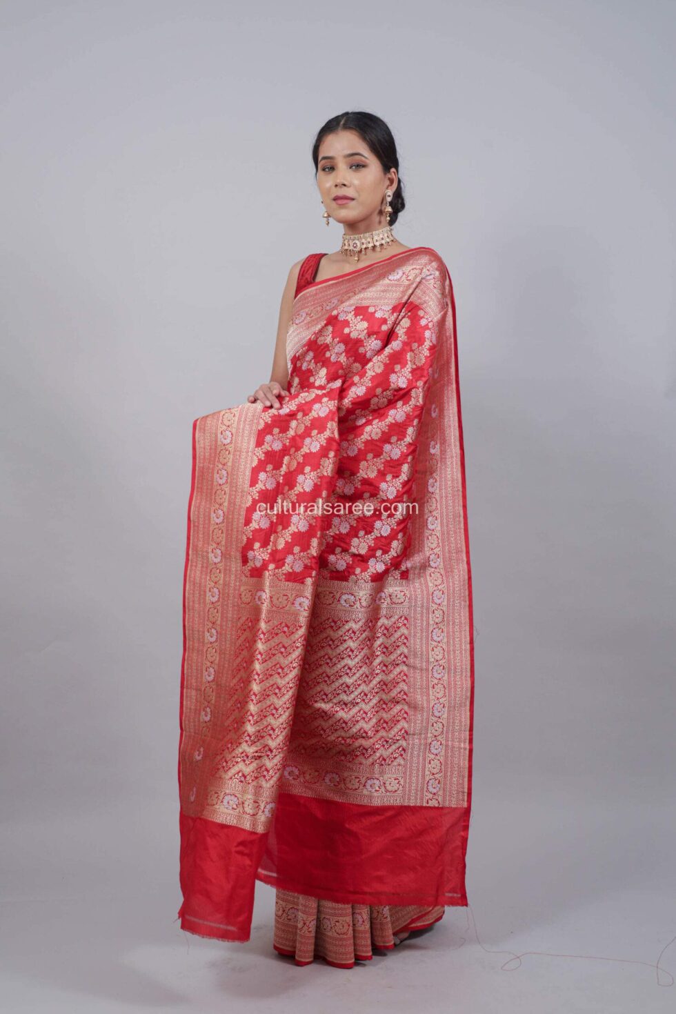 Royal Red Jangla Floral Ada Jal Banarasi Pure Silk Saree