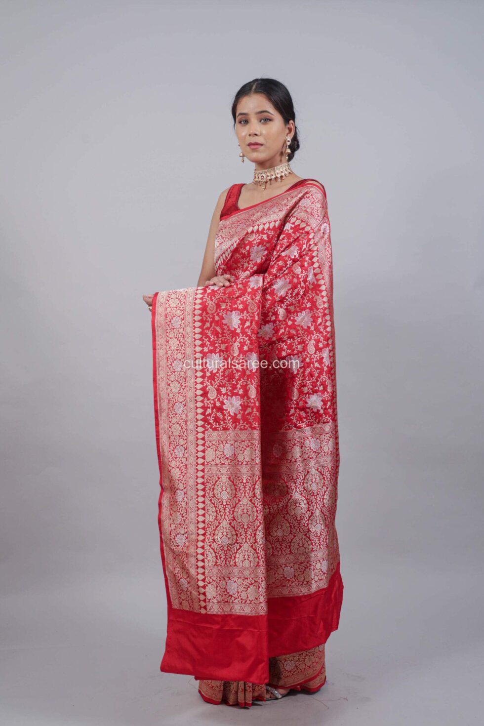 Fabric: Premium Banarasi pure silk, offering a soft texture and elegant drape.