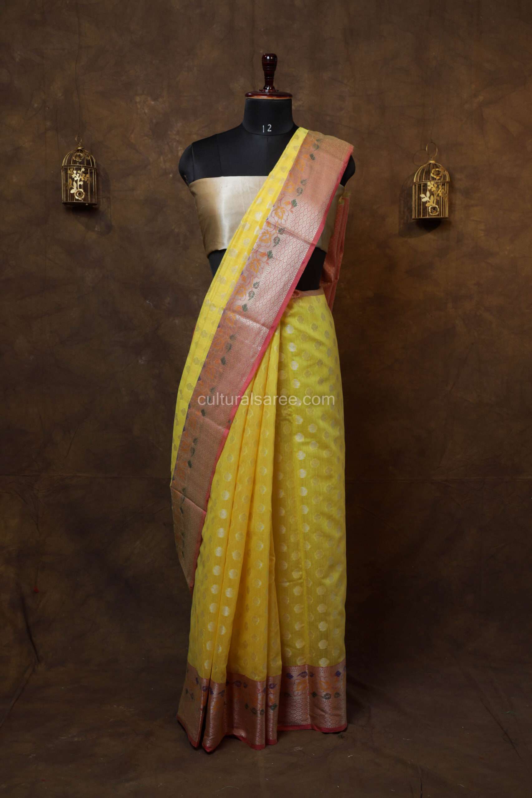 Premium Yellow Color Butawork Banarasi Cotton Saree
